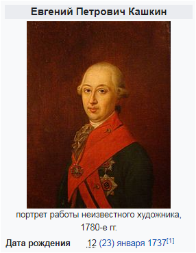 1738 – в Брянске родился Евгений Петрович Кашкин (1738 (по другим данным 1737) - 7.10.1796). С 2.09.1793 по 7.10.1796 он занимал пост тульского и калужского наместника. Указ о его назначении был подписан еще 2.09.1793, а прибыл новый генерал-губернатор в Тулу в декабре. В том же месяце он побывал и в Калуге.