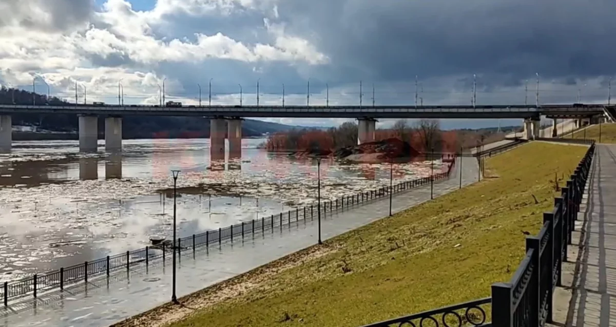 Вода дошла до нижнего променада, но пока не перелилась на него.
