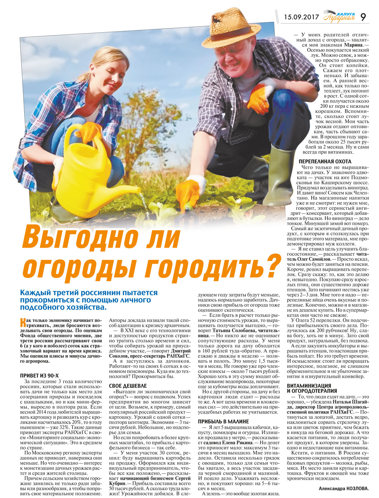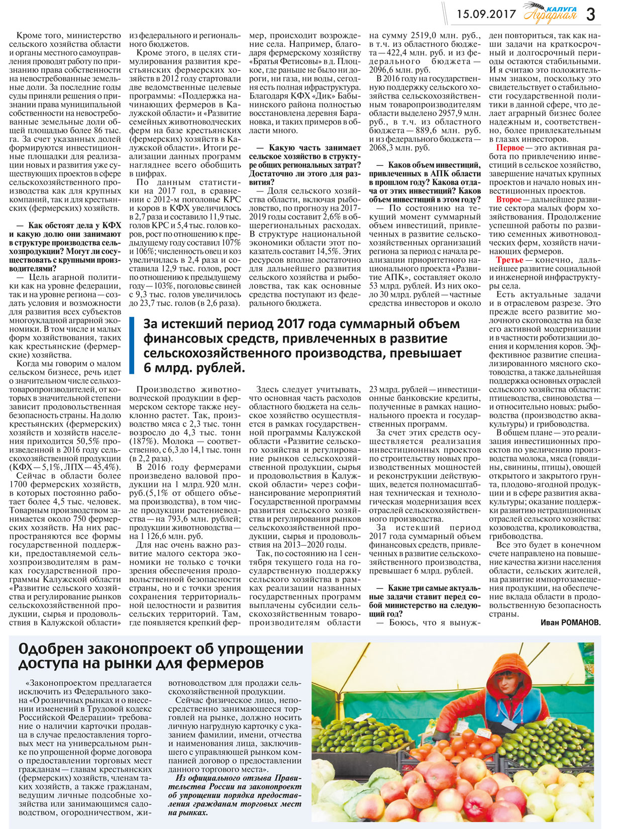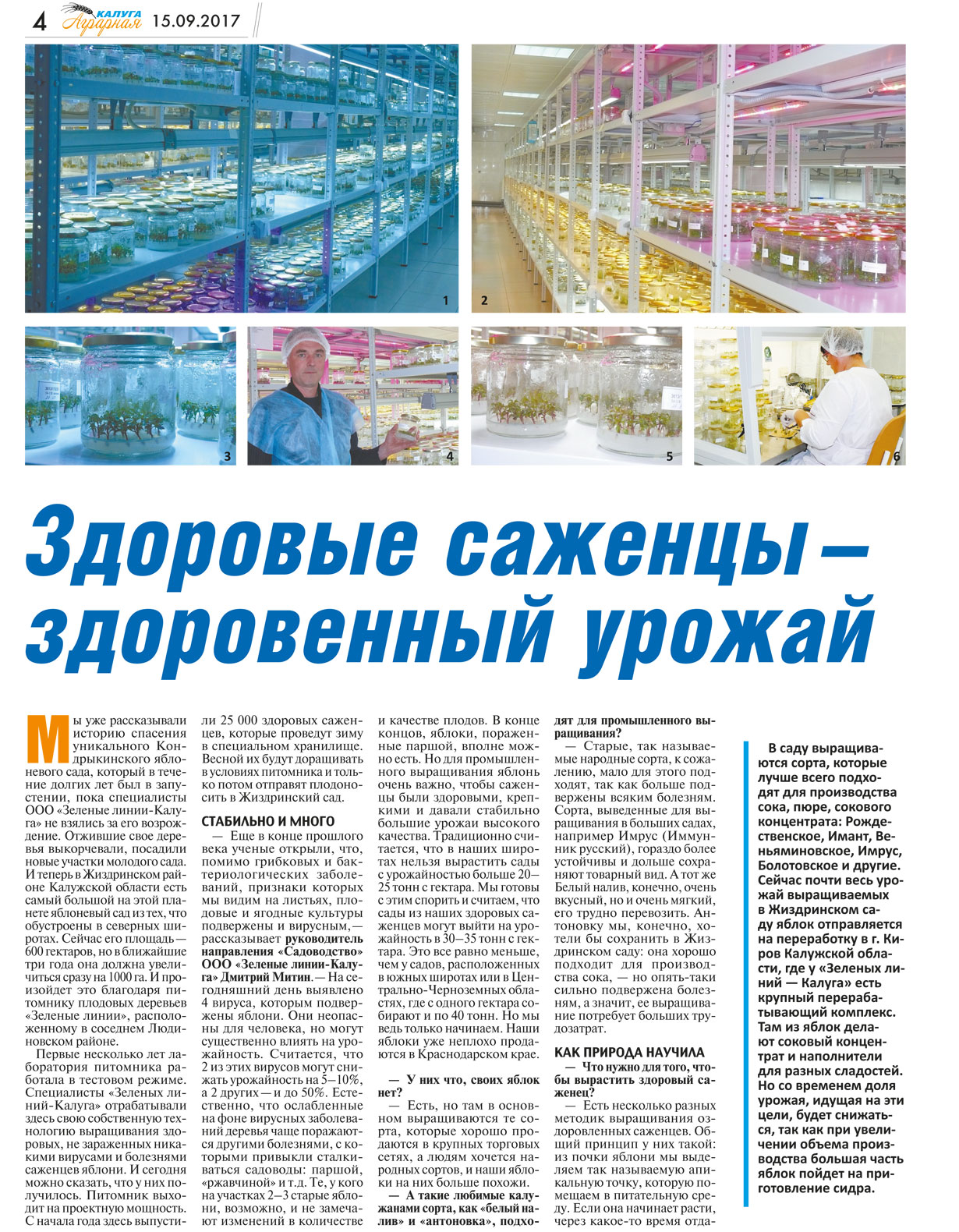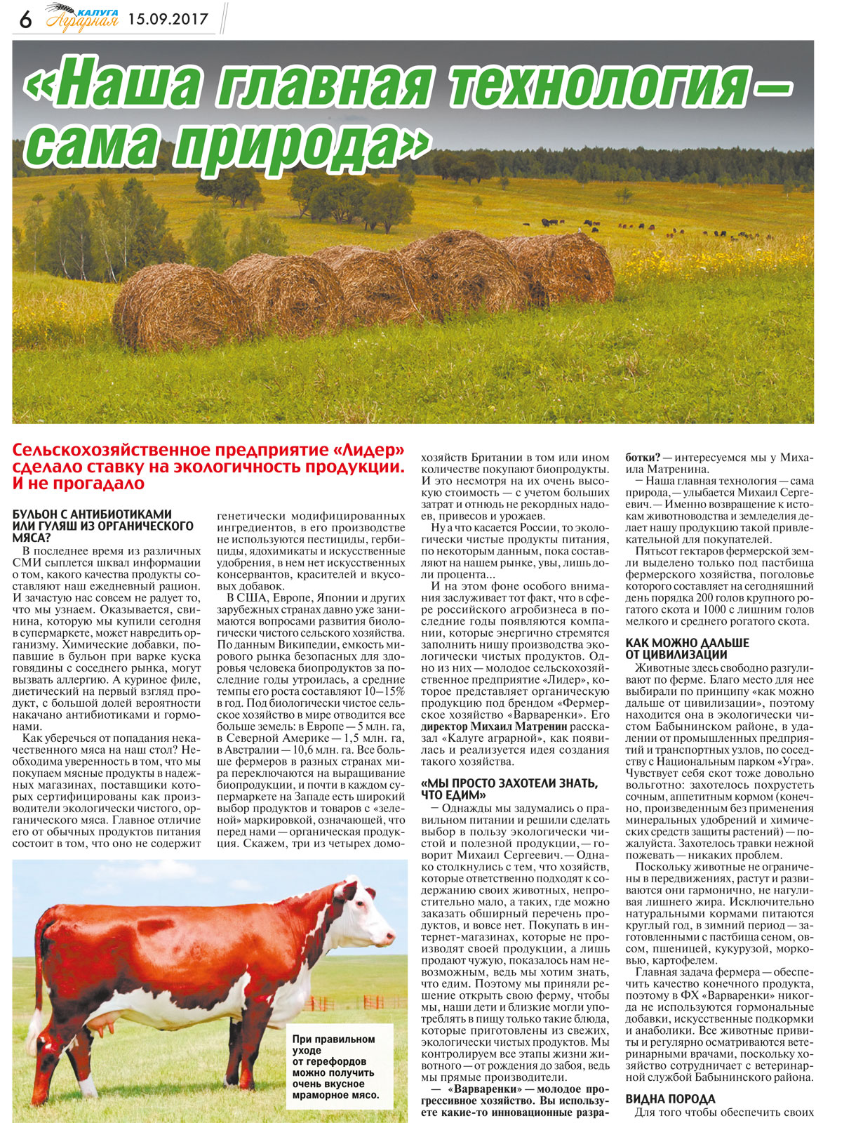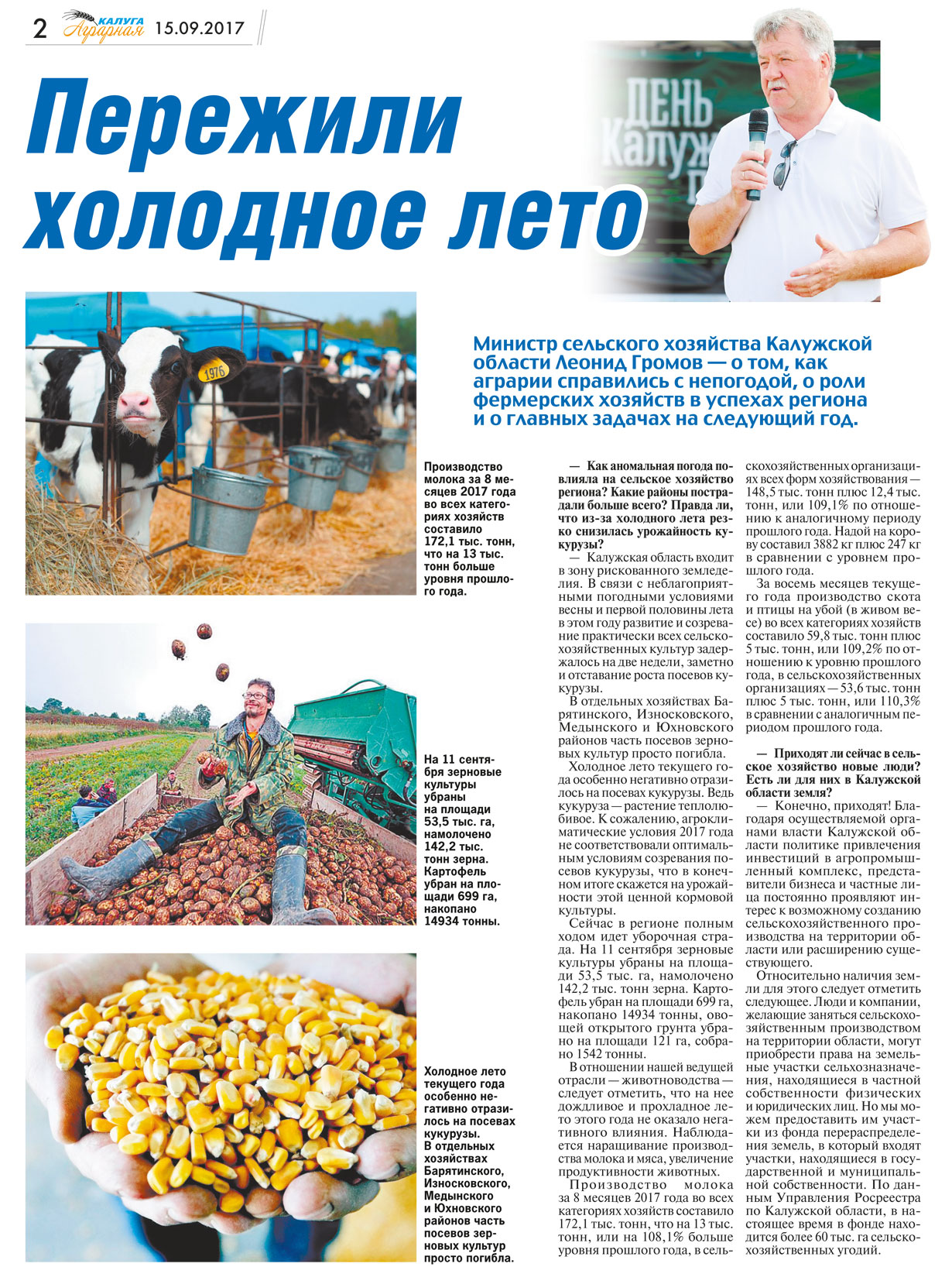 В пятницу, 15 сентября, в Калуге стартовала ежегодная областная агропромышленная выставка-ярмарка «Калужская осень - 2017». Это главное событие калужских аграриев. В честь этого события мы подготовили спецвыпуск - газету "Калуга аграрная".