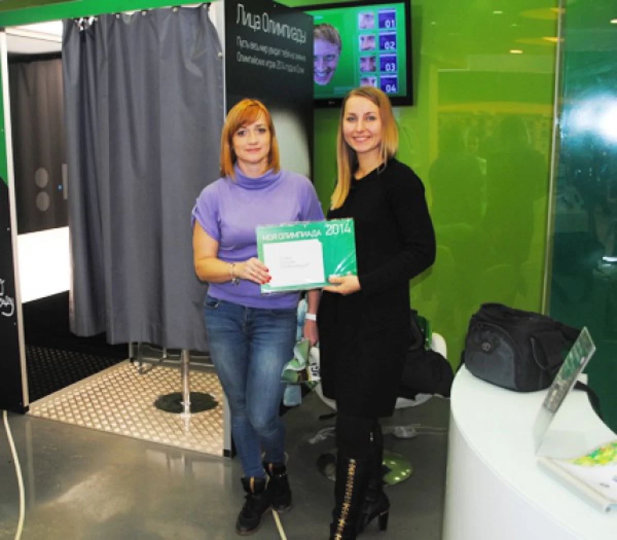 25 декабря 2013г, Калуга. В Калуге продолжается акция «Стань лицом Олимпиады», приняв участие в которой, каждый абонент оператора получает возможность оставить свой след в истории Олимпийских игр. Посетители салона «МегаФона» смогут сфотографироваться в специальной фотобудке и в дни Игр увидеть свои гигантские объемные портреты на фасаде павильона в Олимпийском парке.