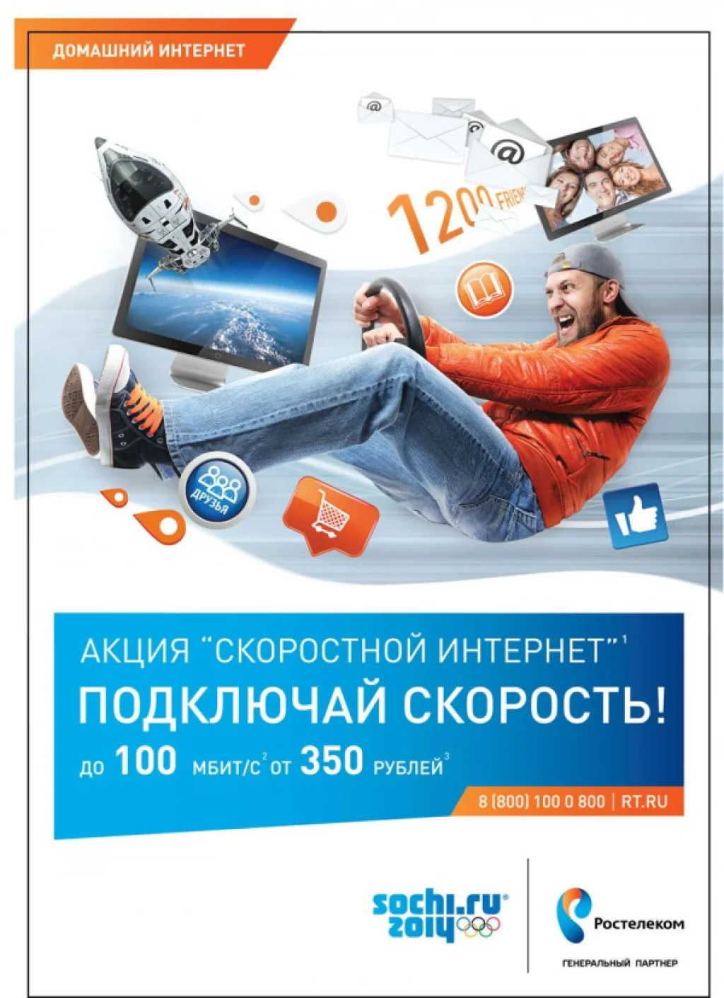 Стать участником акции «Скоростной Интернет» можно оставив заявку на сайте компании www.rt.ru, обратившись в центры продаж и обслуживания или позвонив по бесплатному номеру 8-800-100-0-800.