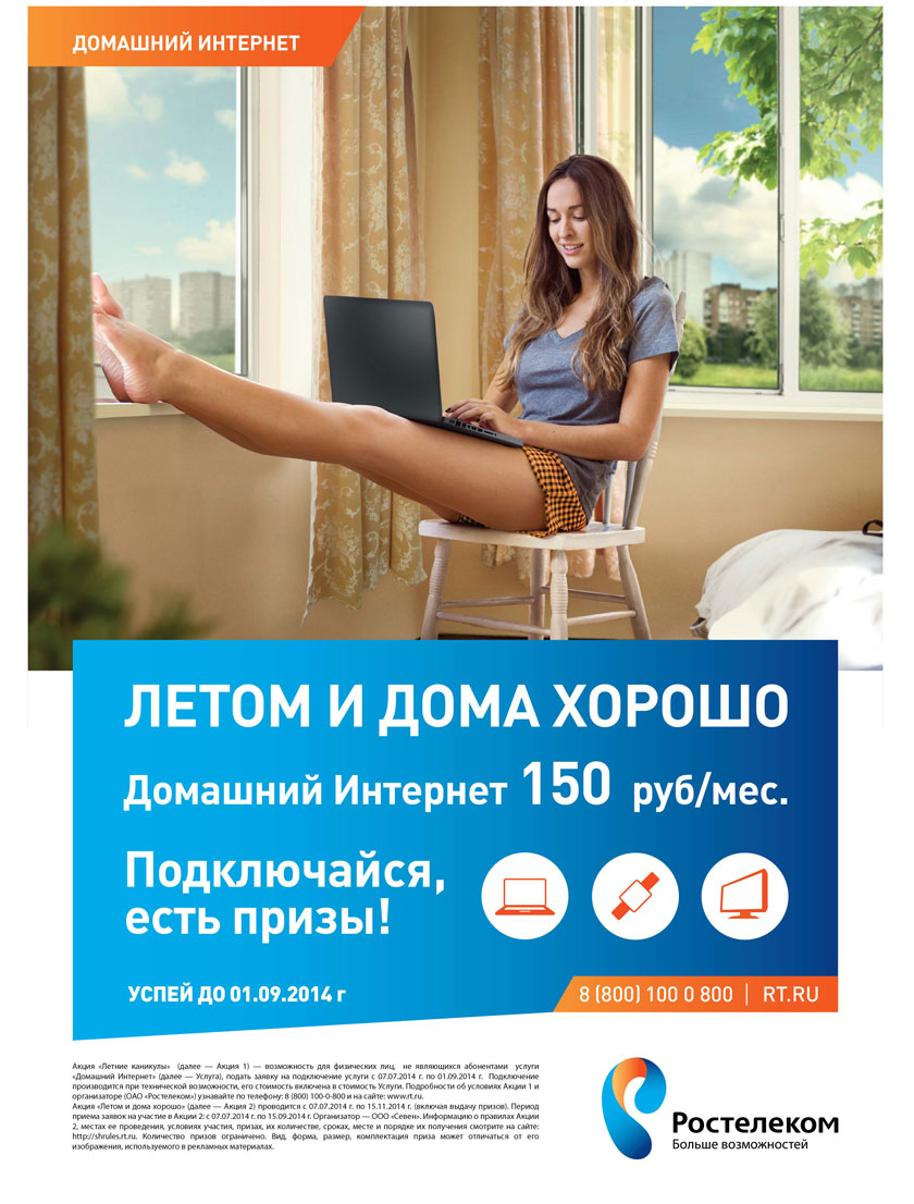 Стать участником акции «Летние каникулы» можно оставив заявку на сайте компании www.rt.ru, обратившись в Центры продаж и обслуживания или позвонив по бесплатному номеру 8-800-100-0-800.