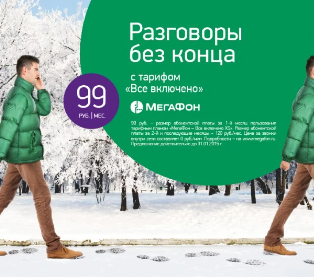5 декабря 2014г., Центральный филиал. Теперь абоненты «МегаФона» могут подключиться к популярному тарифному плану «Все включено ХS» по сниженной цене – всего за 99 рублей в месяц. За эту сумму клиент получает безлимитное общение внутри сети и пакет мобильного интернета 4G+.