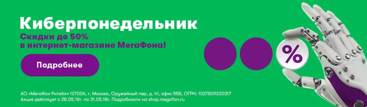АО «МегаФон Ритейл» ОГРН 1027809220317, 127006, г. Москва, Оружейный пер, д. 41, офис 558