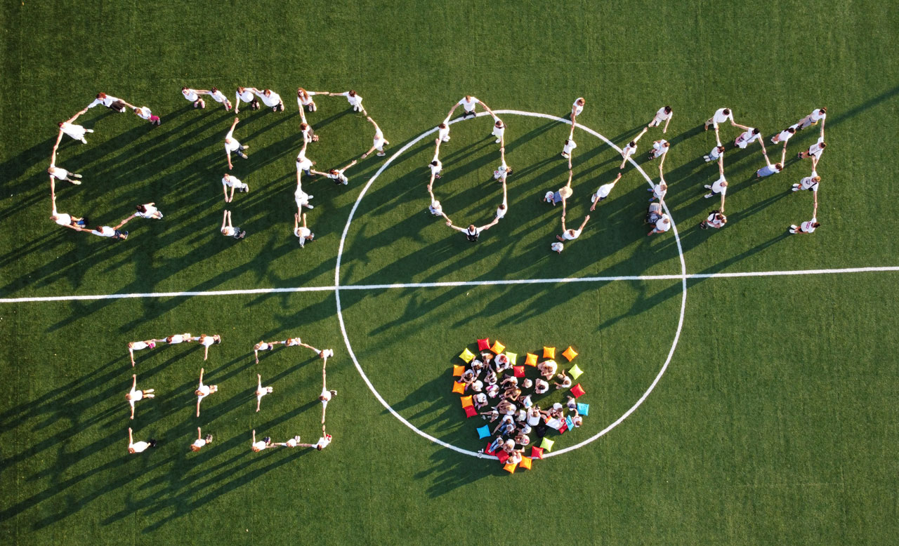 В процессе флешмоба жители выстроились в надпись на футбольном поле, а фотографы и операторы снимали всё происходящее.