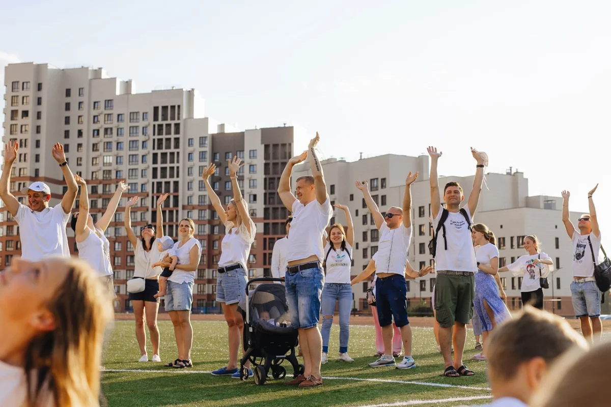В Обнинске в честь Дня строителя прошел флешмоб «Строим по любви». Группа компаний «Новый город» пригласила жителей одноименного жилого комплекса поучаствовать в празднике и просто весело провести воскресенье на свежем воздухе. Таким способом компания решила отметить профессиональный праздник, разделив его с теми, для кого возводит свои дома.
