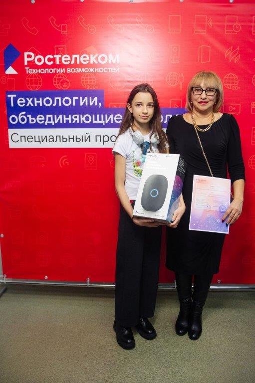 Участники курса получили специальные призы от «Ростелекома», в том числе умные колонки Капсула с голосовым ассистентом Марусей от VK. Гаджеты умеют управлять «Умным домом» от «Ростелекома», включать музыку и кино через Wink, знают сотни сказок, игр, загадок, совершают онлайн-звонки и позволяют слушать музыку через социальную сеть ВКонтакте. Устройство может поставить таймер, завести будильник, вызвать такси, перевести слова на разные языки, включить любимую радиостанцию или ТВ-передачу и многое другое. Капсула проста в использовании, четко выполняет команды и отвечает на любые вопросы. Работает умная помощница от электросети и поддерживает технологии беспроводной передачи данных Wi-Fi, NFC, Bluetooth.