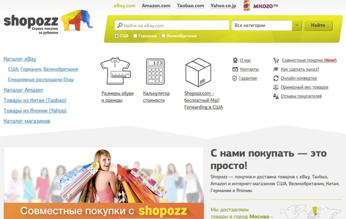 Shopozz.ru - международный сервис, доставляющий товары. География деятельности достаточно широкая. Все сотрудники являются профессионалами и знатоками своего дела.