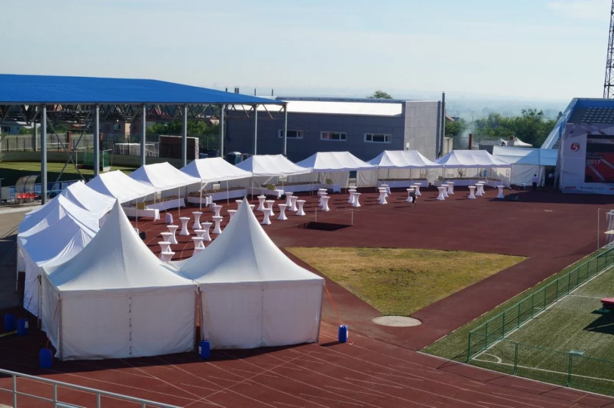- Установка шатров. Их оснащают автономным освещением, рукомойником, тепловыми пушками. Делается это в холодное время года.