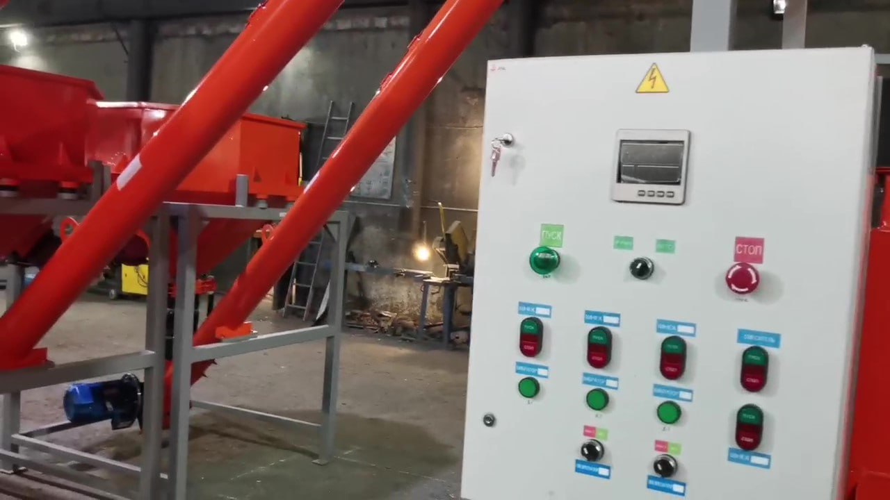 Уровень заполнения бункера исходным сырьем фиксируется на пульте управления.