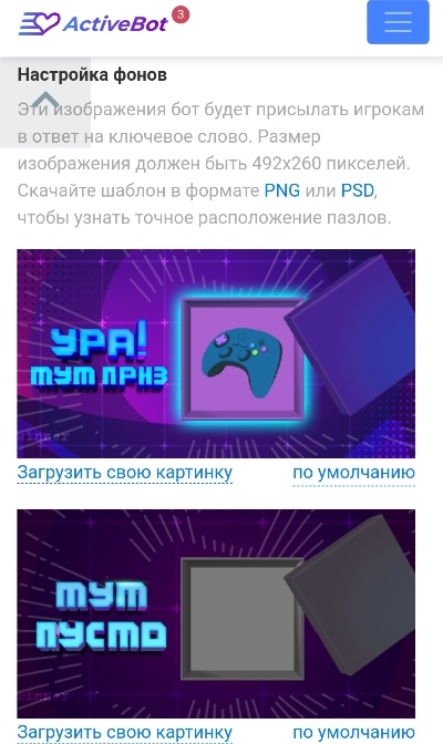 3. Настройка игры. Введите слово, с помощью которого люди будут открывать виртуальные коробки. Добавьте картинки для комментариев или используйте изображения по умолчанию.
