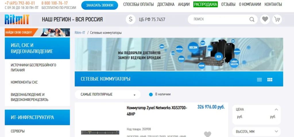 В интернет-магазине Ritm-IT представлено высококачественное оборудование с детальными описаниями и характеристиками. В случае появления сложностей, операторы готовы предоставить клиентам консультации.