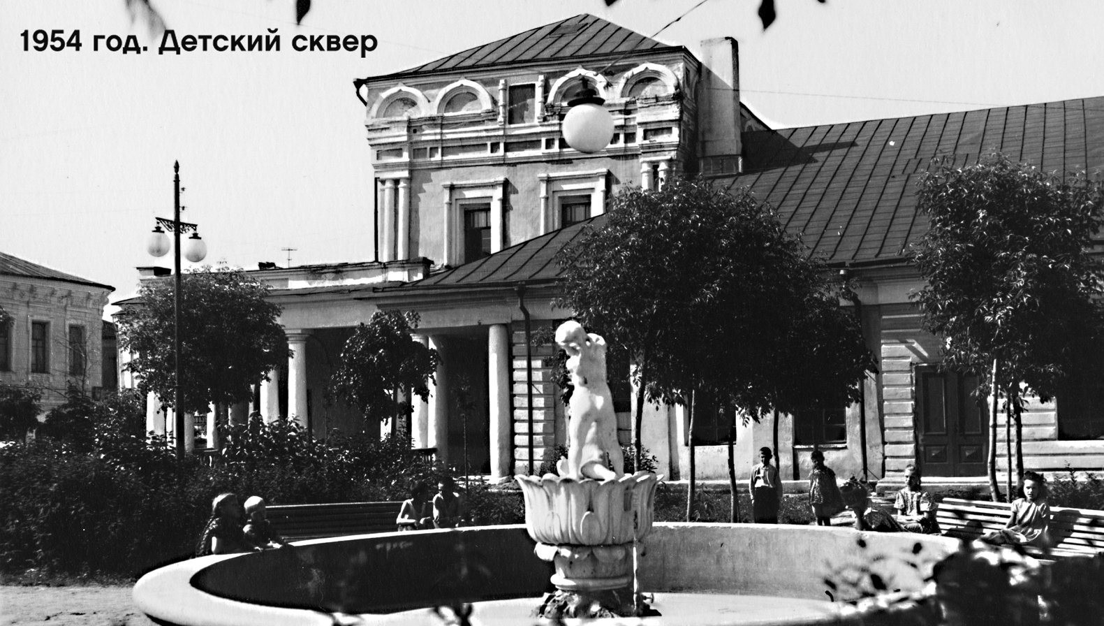 Такой был хороший кинотеатр и скверик с фонтаном «Детский сквер» («Счастливое детство», одна из версий), в его центре появился фонтан и композиция «Девочка поливает мальчика из кувшина», потом композицию заменили на косулей(которых можно увидеть в фильме "Карнавал". ).