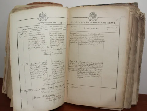 Метрическая книга состояла из трех частей: записи о рождении, о браке и о смерти. Например, запись о рождении содержала следующие сведения: дату рождения, имя родившегося, фамилию, имя и отчество отца, имя и отчество матери, их сословие, вероисповедание и место постоянного жительства. В записи о браке указывались дата венчания, фамилии, имена и отчества жениха и невесты, их вероисповедание, сословие и место постоянного жительства.