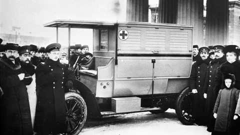 Техническое оснащение и медикаменты оплачивались благотворителями, и медики выезжали на экстренные вызовы также бесплатно. К сожалению, в 1914 году в связи с Первой Мировой войной, едва наладившаяся система скорой помощи, понесла существенный урон, так как их автомобили реквизировали для перевозки раненых, а многих врачей призвали на фронт.