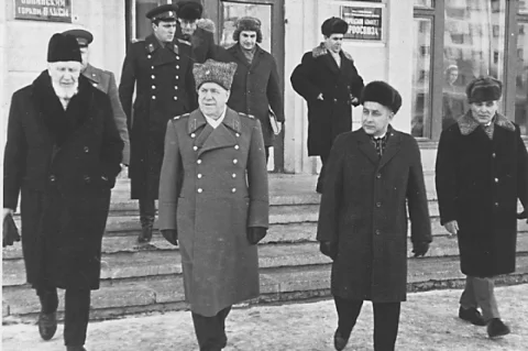 Встреча с обнинцами началась вечером в ДК ФЭИ, в котором зал был переполнен. Встречу вёл первый секретарь горкома Евгений Фёдоров, он и представил высокого гостя публике. Георгий Константинович выступал без бумажки, и много рассказывал о битве за Москву. Потом сказал: «А теперь задавайте любые вопросы, даже самые злые, на все отвечу». Георгий Жуков на Обнинской атомной станции. Фото: Из архива/ Алексей Собачкин Затем Маршала Победы пригласили в Курчатовский домик на ужин.