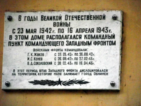 В Обнинске и сегодня хранят память о том визите Жукова. Историческое название улицы Жукова, - бульвар Дружбы, возникло в конце 50-х. Первые дома там построили в 1960 году. В 1972-м на соединении бульвара Дружбы и улицы Мира открыли новый мемориал, где перезахоронили останки воинов 53-й дивизии, умерших в госпиталях от ран и болезней. Там зажгли Вечный огонь, и это предопределило переименование.
