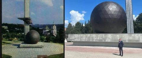 А более детальную информацию о том, как идет ремонт "шарика" дал тогда главный архитектор Калуги - мастер деревянного зодчества, "знаменитый" Алексей Комов. Он рассказал, что строители восстанавливают поверхности нержавейной облицовки стелы и скульптурного изображения Юрия Гагарина. После их аккуратной очистки поверхность приобрела изначальный естественный цвет патинирования. Вместе с этим демонтируется штукатурка с пьедестала, которую заменят гранитные блоки, как, изначально и задумывали авторы. К юбилею Калуги выдающийся отреставрированный монумент скульптора Льва Кербеля и архитектора Евгения Киреева предстанет перед горожанами и гостями города в первозданном виде...», - подчеркнул главный архитектор.