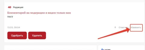 Странно. Проверили. Кнопка редактирования появляется сразу, а не после модерации.