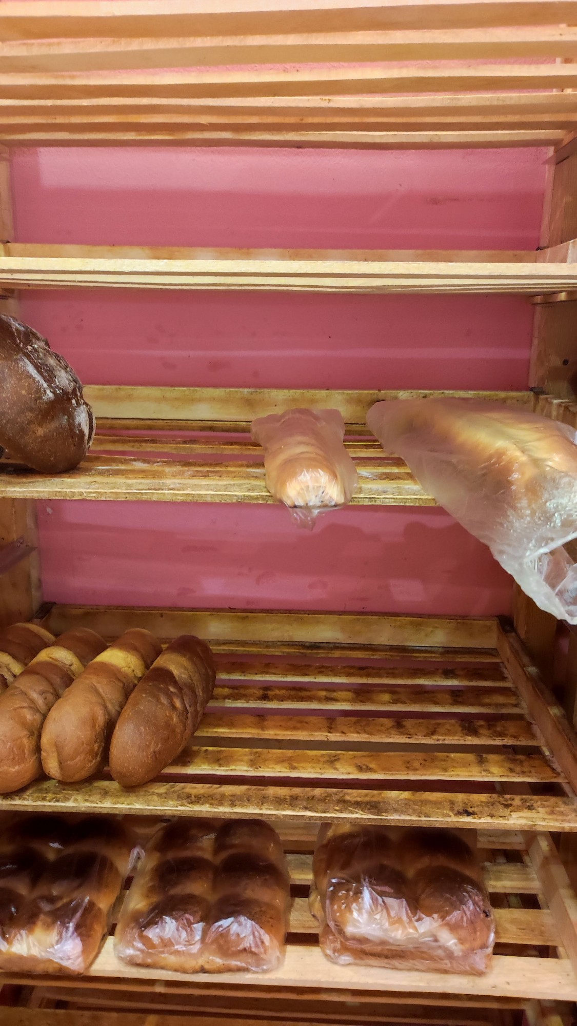 Как и обещал - вот фото багета. Он явно не традиционный бабынинский, так как плоский внизу и этот самый низ подгоревший, а у них обычно не такой - колбаской, как и положено. И, кстати, хлеб слева - круглый черный, - вроде как тоже не их обычный, не припомню, чтобы у них был такой раньше. Я что-то сразу внимания не обратил, а теперь, после слов продавщицы о том, что там свое подсовывают вместо бабынинского, присмотрелся и вроде как даже батоны не такие как всегда.