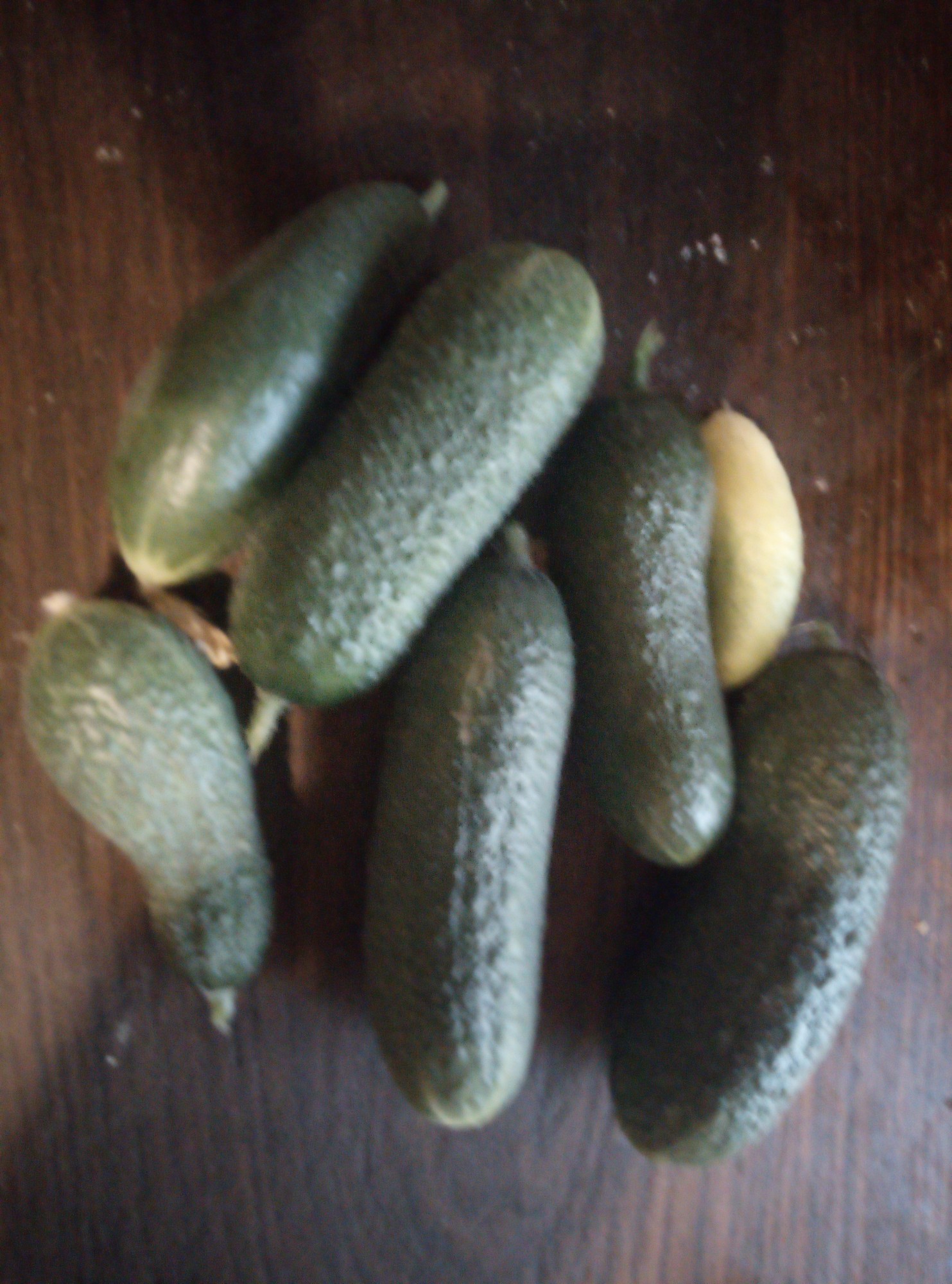 Снял первый урожай с балкона. Прикинули: они даже в банку 0,7 не влезут. Так что решили съесть в чистом виде, а не мариновать.
