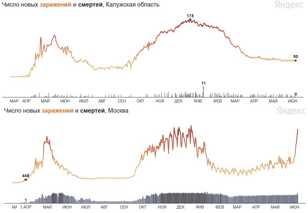 По Калуге пока скачка нет, надеюсь что мЕньшая плотность заселения не даст вирусу разгуляться.