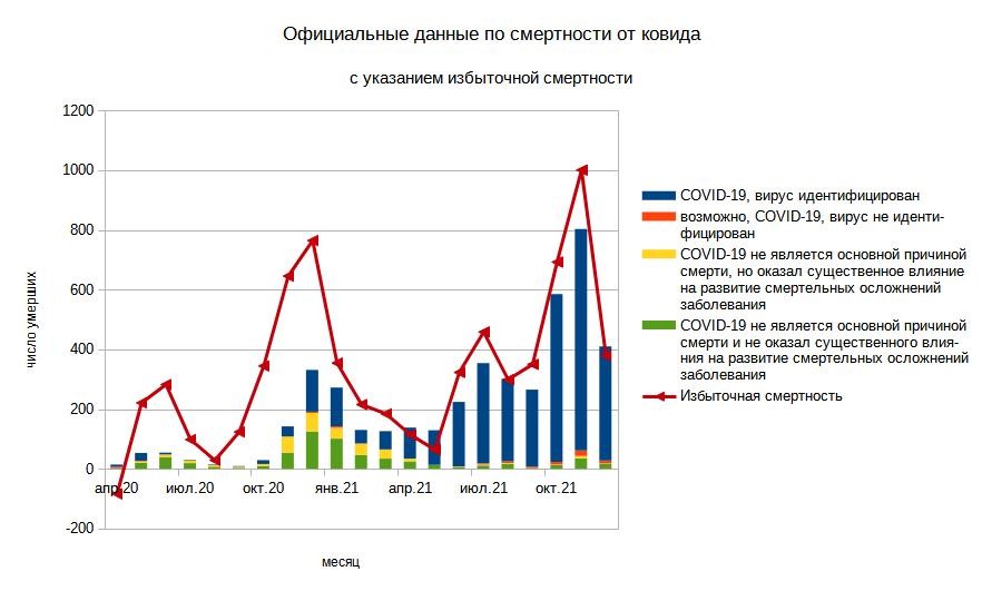 Таким образом избыточная смертность составила 381 человек или 31% от допандемийного уровня. Примерно каждая четвертая смерть в декабре была от ковида.