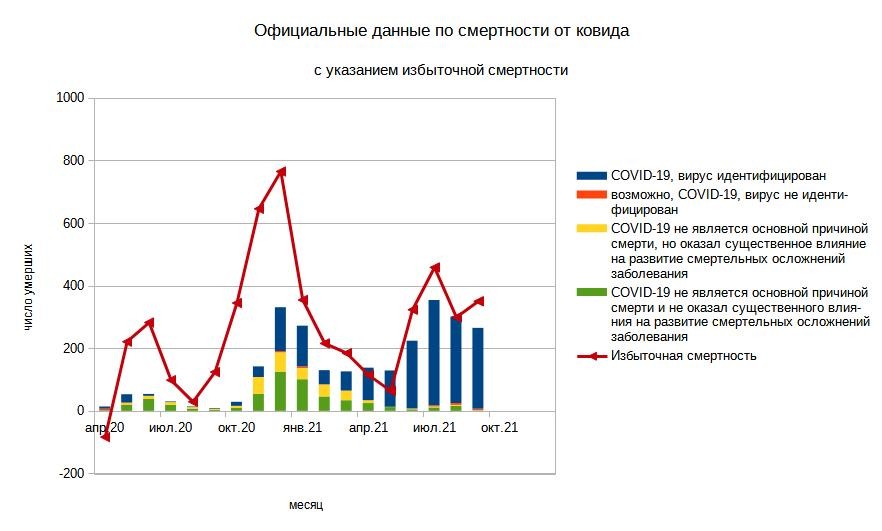 Число умерших от ковида, как от основной причины смерти - 263 человека (в августе 282), это самый интересный момент. В августе вся избыточная смертность объяснялась ковидом, как это происходило во всем мире. Сейчас опять начинаются странности...