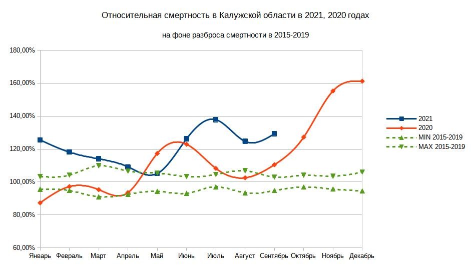 Кто не в курсе, допандемийная смертность за те 17 месяцев составила бы 22462 человек, т.е. в пандемию усредненно +21%. Каждый пятый в КО скорее всего умирает от ковида.