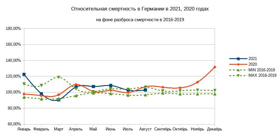 масштаб одинаковый. Т.е. благодаря совместным усилиям граждан и властей, в КО избыточная смертность составила 18%, в Германии избыточная смертность составила 5% за тот же период.