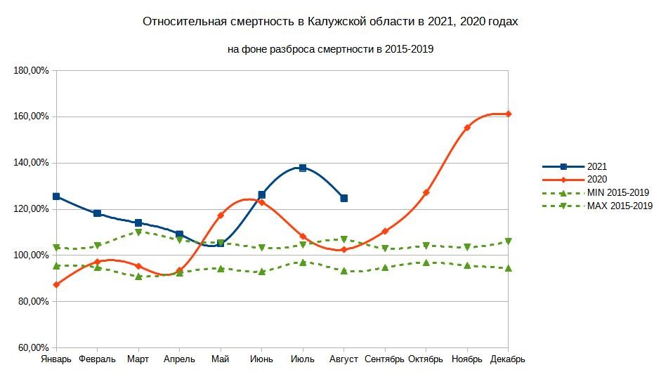 За август избыточная смертность составила 300 человек или +25% в сравнении с 2015-2019 годами. В июле было +38%, так что волна в августе действительно шла на спад.
