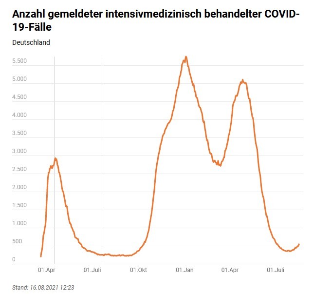 На графике число случаев ковида потребовавших использования палат интенсивной терапии. Хорошо видно, что факт прихода дельты в конце мая - никак на динамику использования потребности в палатах не повлиял.
