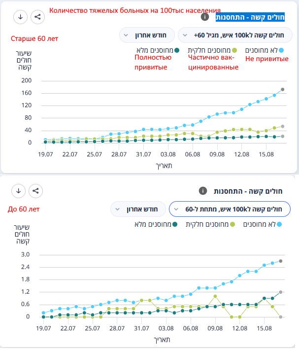Вашему вниманию предлагается графики МинЗдрава Израиля (https://datadashboard.health.gov.il/COVID-19/general):