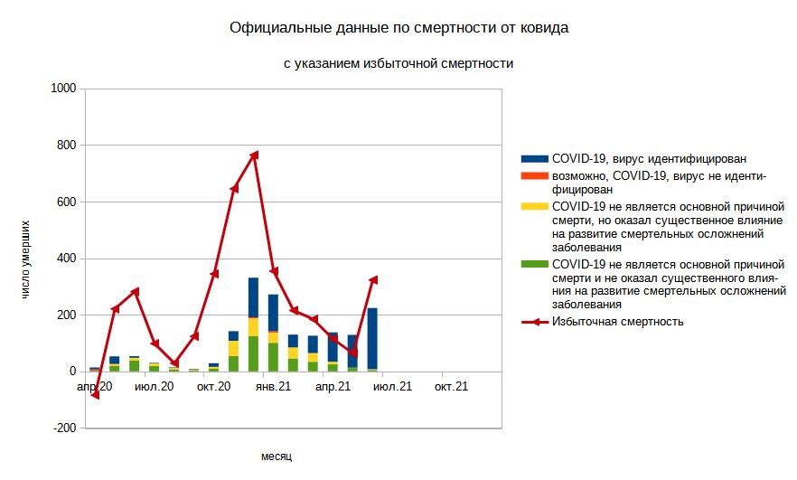 Ну и традиционный график избыточной смертности и категорий ковидной смертности