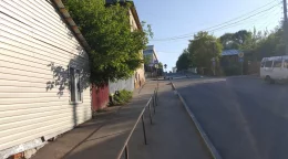 Лужа шириной в тротуар между домами номер 9 и 11 по улице Пушкина