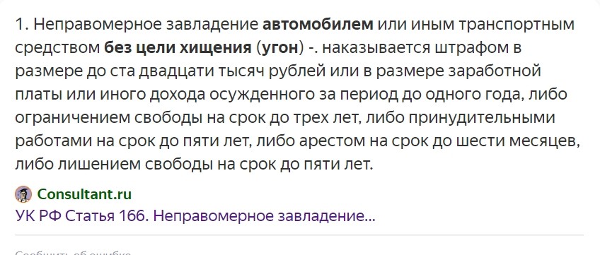 Что самое примечательное, весьма хороший пример борьбы с данными преступлениями в Узбекистане: Там утром поймали за рулем чужого авто- вечером уже 15 лет дали, поймали вечером- утром уже 15 лет в кармане. Именно поэтому еще в 90 е там о сигнализациях и платных охраняемых парковках и не слышали в силу отсутствия необходимости в них, открытые кабриолеты стояли ночью и к ним никто не подходил.