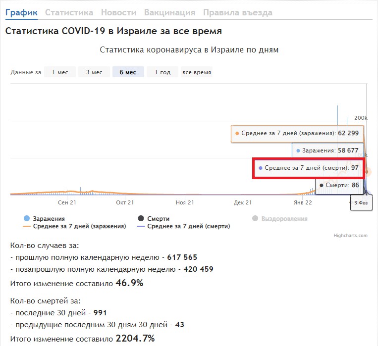 Да, да, всё это очень условно. Куча разных условий и ничего конкретного, как в метеорологии. Вакцина ничего не показывает, это не телевизор. По статистике, если не ошибаюсь, в Израиле меньше стариков, чем в России, раза в полтора. Плюс разваленной "эффективными менеджерами" медицины там нет. И Цкаев тоже пока в Израиль не уехал, представьте себе. И при всём при этом, там заболевают и умирают. Так что делаем? Упорно продолжаем колоться не пойми чем, не пойми от чего?