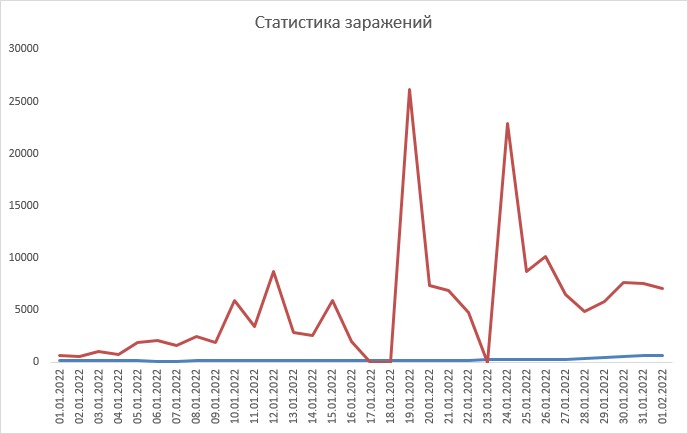 Ну да, в Калужской области тишь да гладь (синяя линия - КО, красная - Израиль в пересчёте на миллион населения):