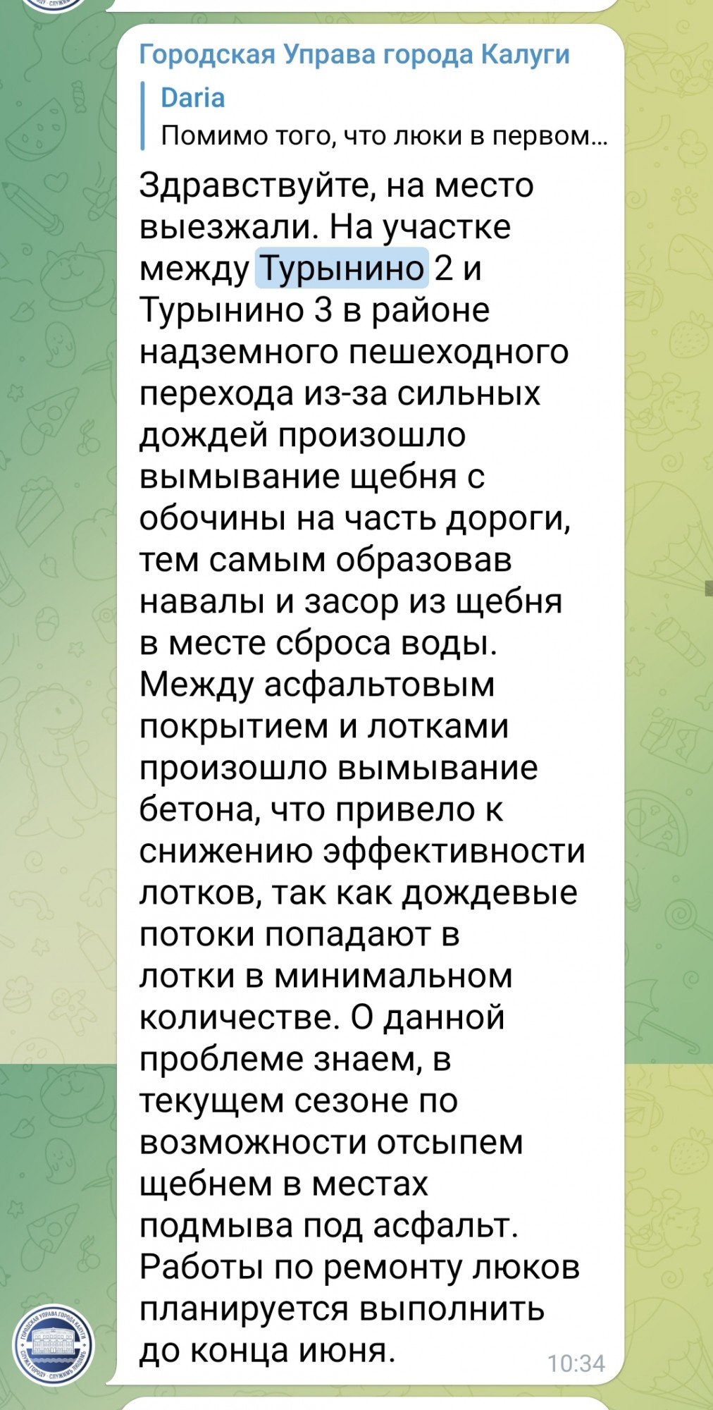 После нескольких вопросов по улучшению быта и жизни, как в деревне так и в Турынино, меня решили заблокировать.