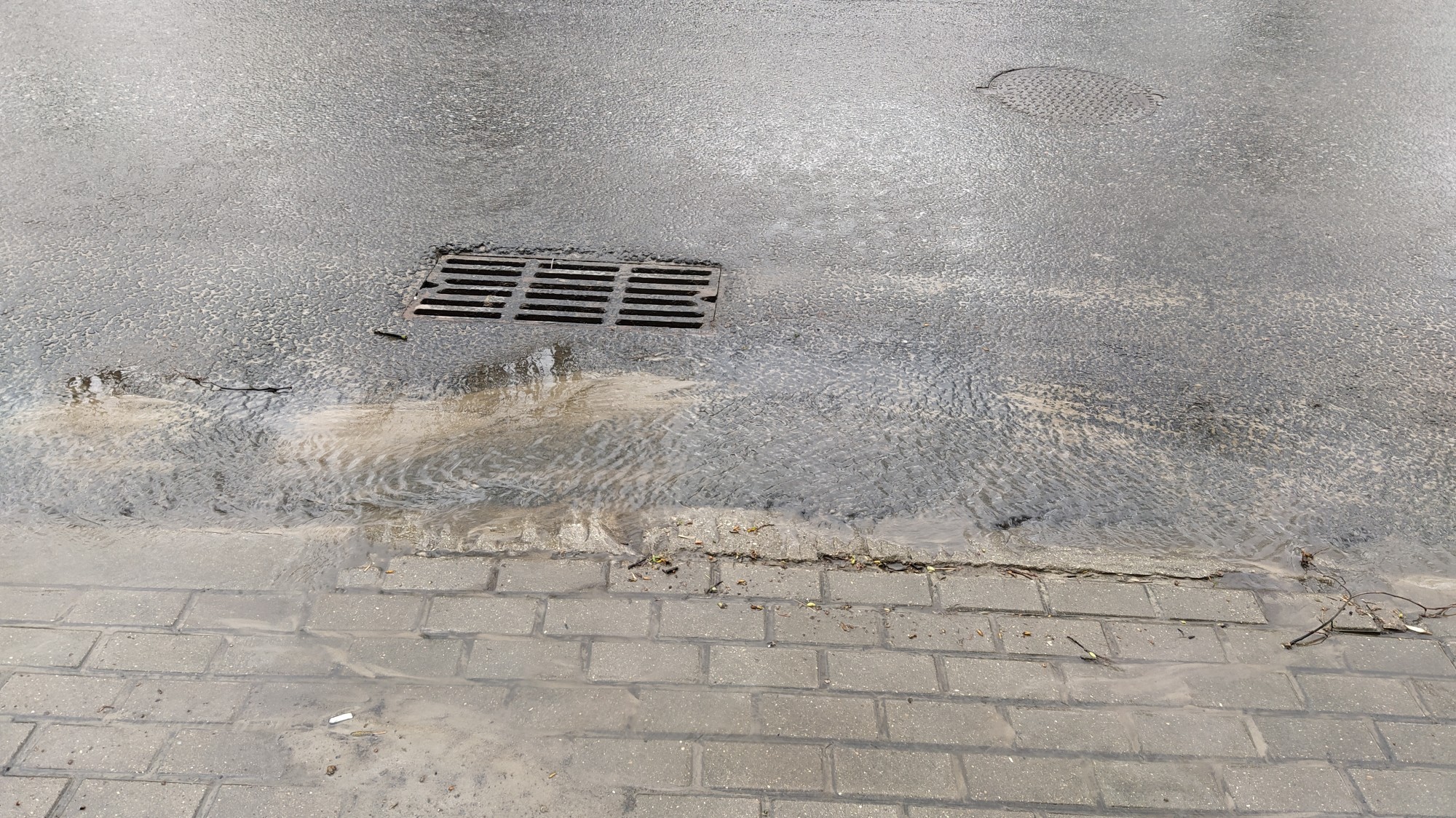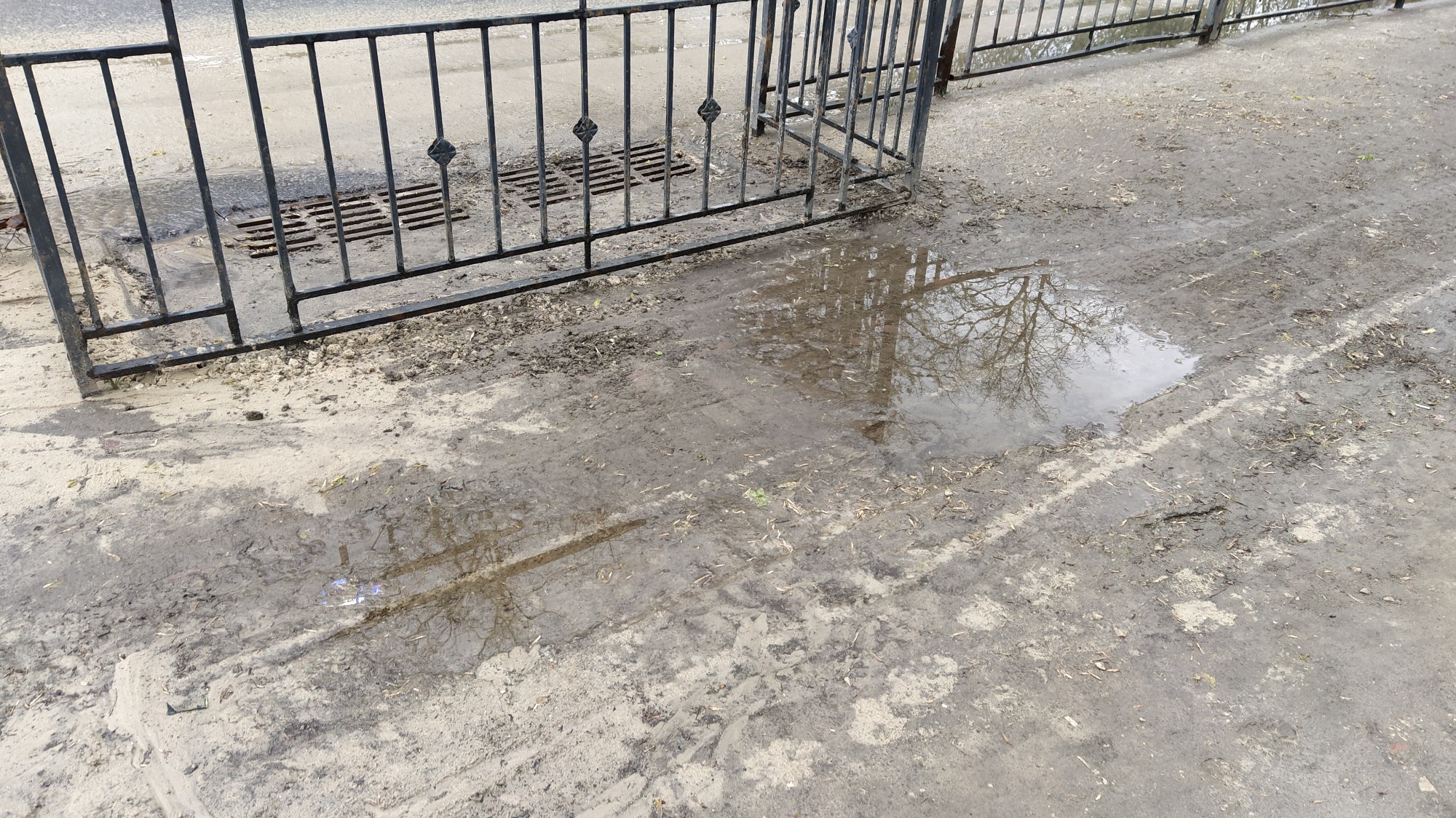 вот такая красота после БКАД, зато красивые чугунные решетки, раньше были не красивые, но справляющиеся с потоком.