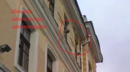 Сыпется на тротуар фасад дома на Дзержинского 57