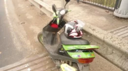 Девушка на мацацикле упала на мосту