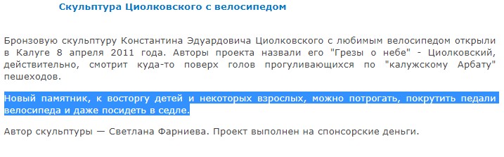 Что мы видим этим летом? Да то же самое – «В Калуге вандалы разобрали велосипед Циолковского» https://www.kp40.ru/news/incidents/83089/