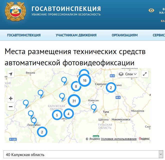 Есть много сайтов, например, сайт ГИБДД, на котором показано размещение камер на карте.Почему нельзя сделать вкладку «Места установки мобильных дорожных камер в Калужской области сегодня»? Пусть всё будет на сайте ГИБДД, а редакция может спокойно добавить волшебную кнопку на главную страницу и заниматься журналистикой, творя историю и новый могучий русский язык.