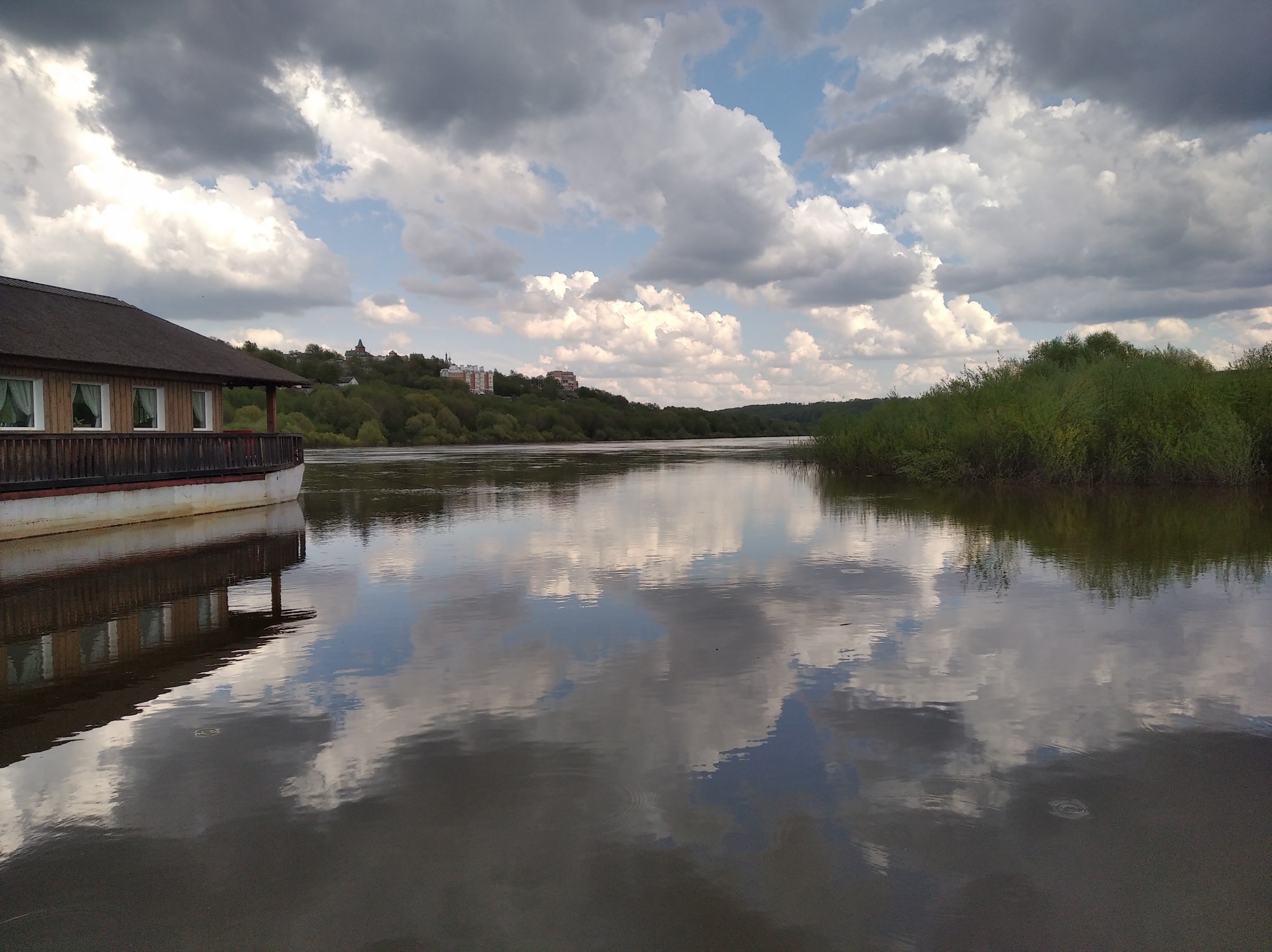 Попросился ребенок на рыбалку. Поехали на Малинники, пройти не смогли - сыро после дождей (дело было в мае). Куда поехать, чтобы был сухой подход к воде? Поехали к понтонному мосту со стороны правого берега. Несколько раз закинул удочку, налетела туча и начался сильный дождь. Поехали домой.