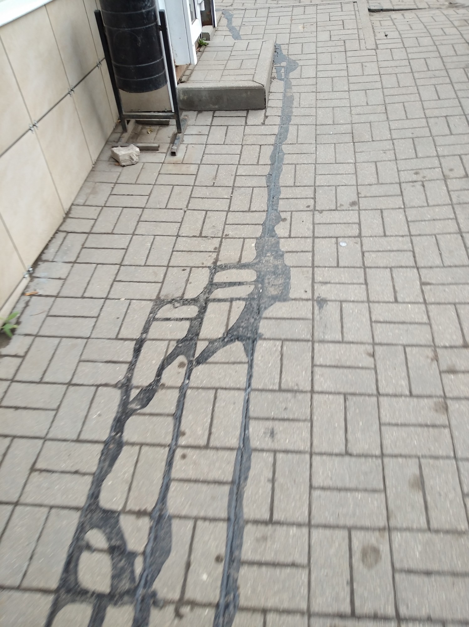 С дорогами тоже интересно. Лужи не исчезнут, тротуар заляпали битумом, асфальт на переходе стал выше тротуара...
