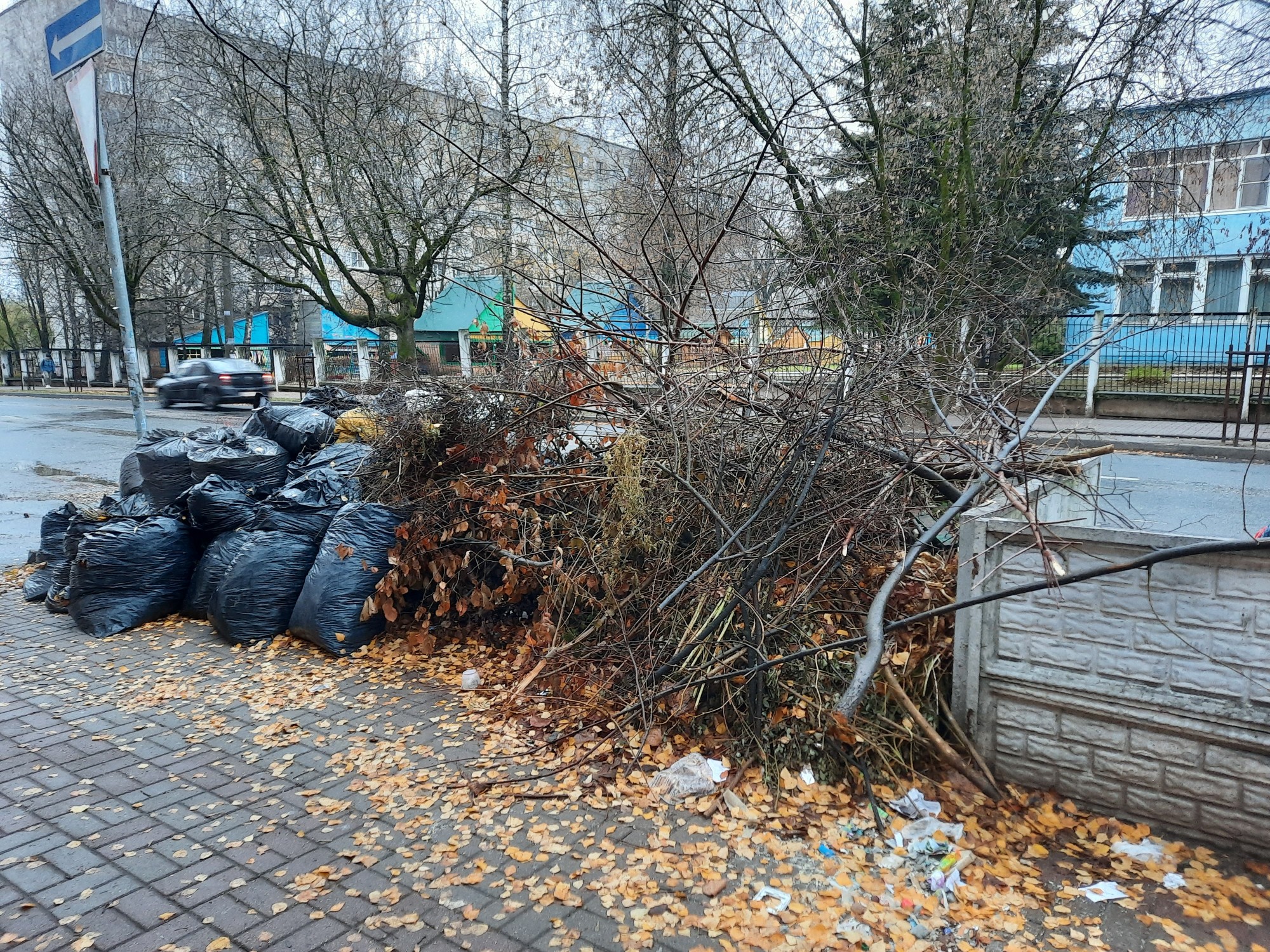 В мешках листва (мешки от длительного возлежания рвутся, листва высыпается)