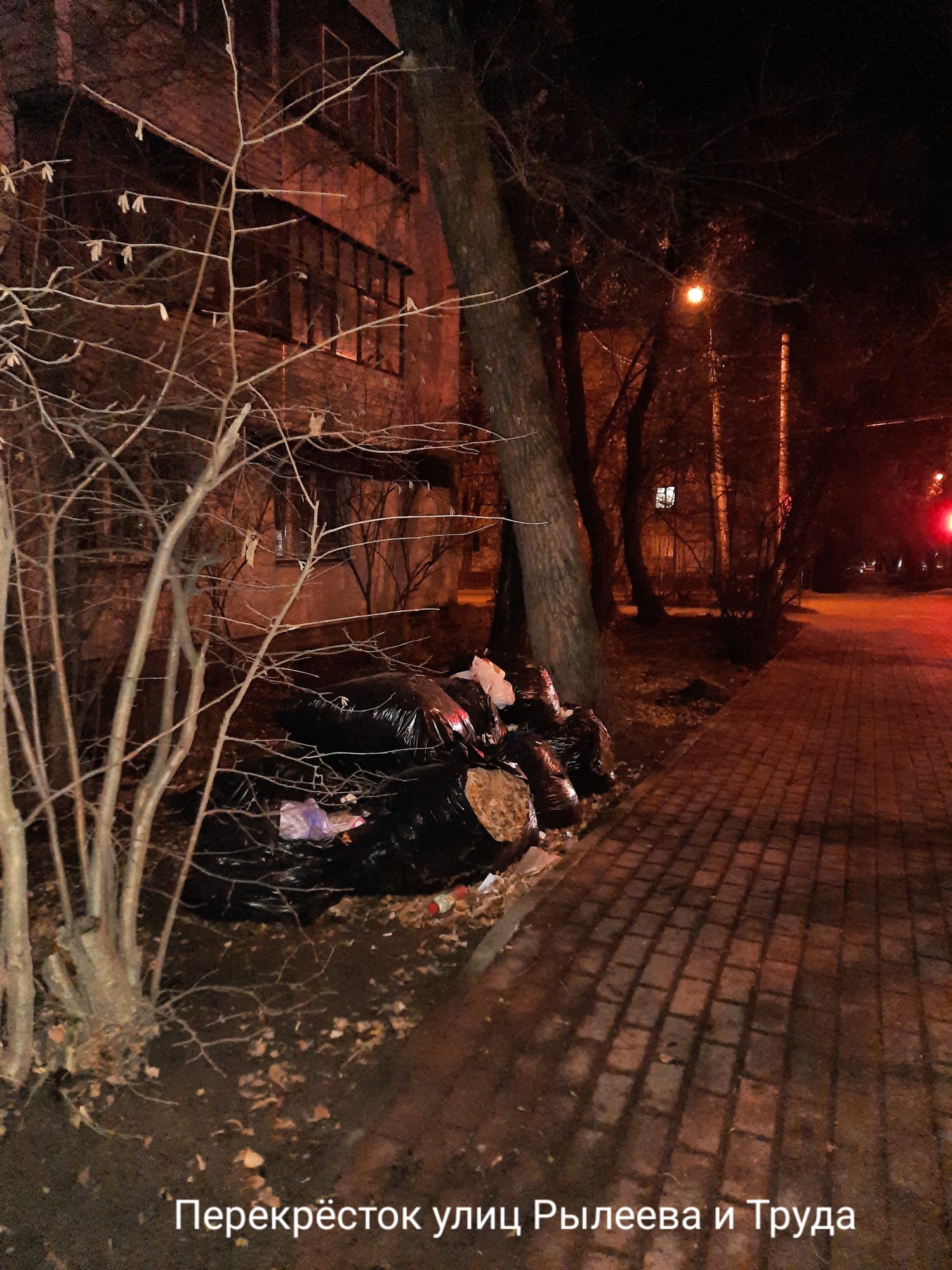 на лбулазером, или чем там ещё по современным технологиям, и считывающие элементы на входе - "не естественный отбор" в действииЗдесь поверх мешков с листвой народ стал выбрасывать и обычный мусор (мусорных урн по городу очень мало)