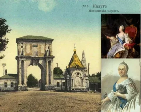 Следует обратить внимание на то, о каких триумфальных воротах идет речь и где они располагались. В среде калужских краеведов глубоко укоренилось мнение, что Екатерину жители города встречали у каменных Московских ворот, и именно они были специально выстроены к приезду императрицы. Но этой традиции противоречит то, что Екатерина ехала не со стороны Москвы, а со стороны Тулы, поэтому триумфальные ворота должны были находиться на въезде в город, но только в другой его части. Принимая в расчет время года и сжатые сроки строительства (поездка императрицы в Калугу не планировалась задолго до ее осуществления), можно предположить, что к встрече Екатерины II калужским купечеством были сооружены деревянные триумфальные ворота, которые до наших дней не сохранились. По всей видимости, установлены они были на Тульской дороге у въезда в город, вблизи места пересечения современных улиц Салтыкова-Щедрина и Степана Разина.