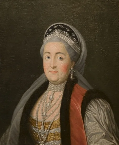 В архивных документах музея картина значится как «Портрет Екатерины II в костюме калужской горожанки». В этом же наряде были выполнены и две памятные медали в 1766 и 1779 годах.
